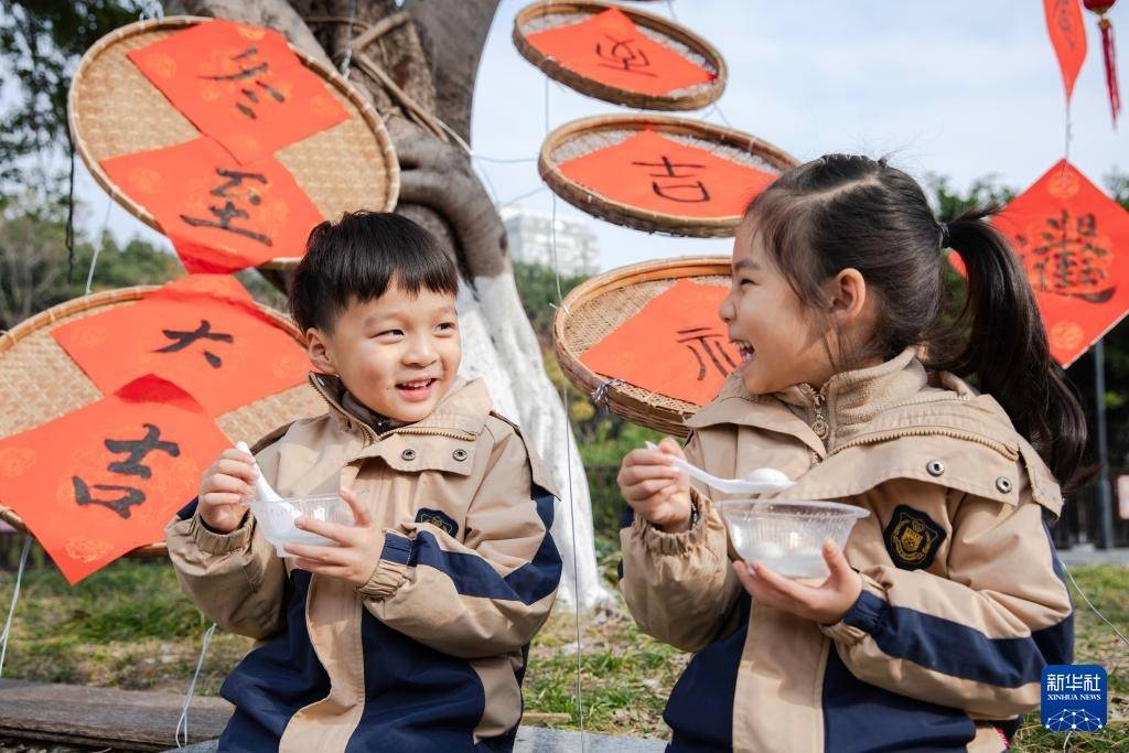 12月18日,在浙江省温州市鹿城区万源社区举办的“足够精彩 暖聚冬至”主题活动现场,小朋友品尝汤圆迎接冬至。